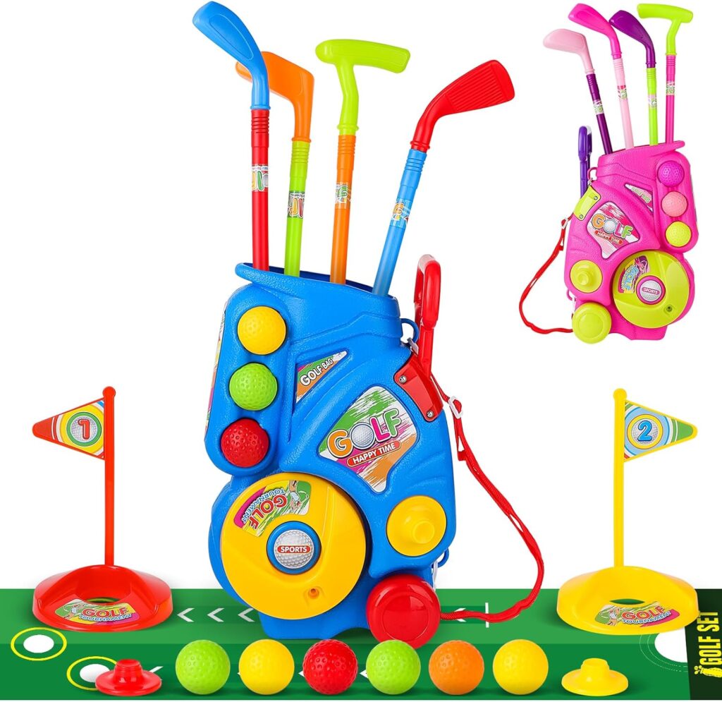 Con colores vibrantes y diseños llamativos, el deAO Juguetes de Golf para Niños está diseñado para captar la atención de los más pequeños. Este enfoque no solo hace que el juego sea más atractivo, sino que también ayuda a los niños a diferenciar y aprender sobre los diferentes elementos del golf de una manera divertida y educativa.