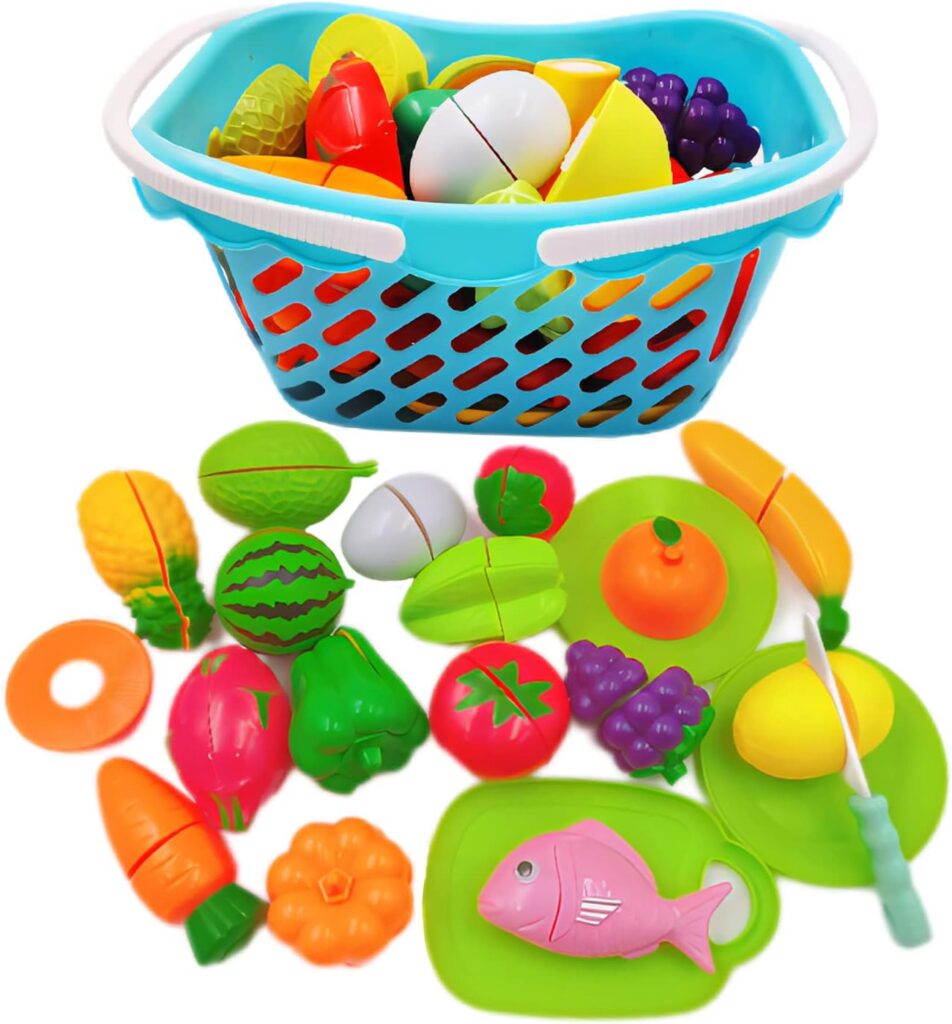 TLHWIN 21 Piezas Cortar Juegos de Frutas: El Carrito Compra Juguete Ideal para Niños