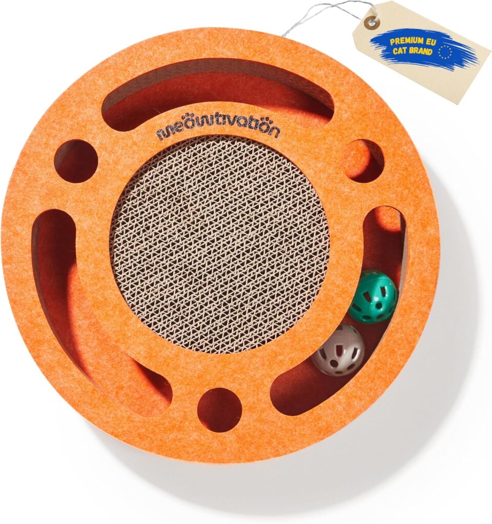 Usuarios que buscan juguetes gato valoran el Cat Scratcher with Ball Track with Bell por combinar rascado y juego interactivo. En reseñas, se destaca la pista con dos bolas con cascabel que mantienen la atención del gato y el acabado en fieltro que evita deslizamientos.